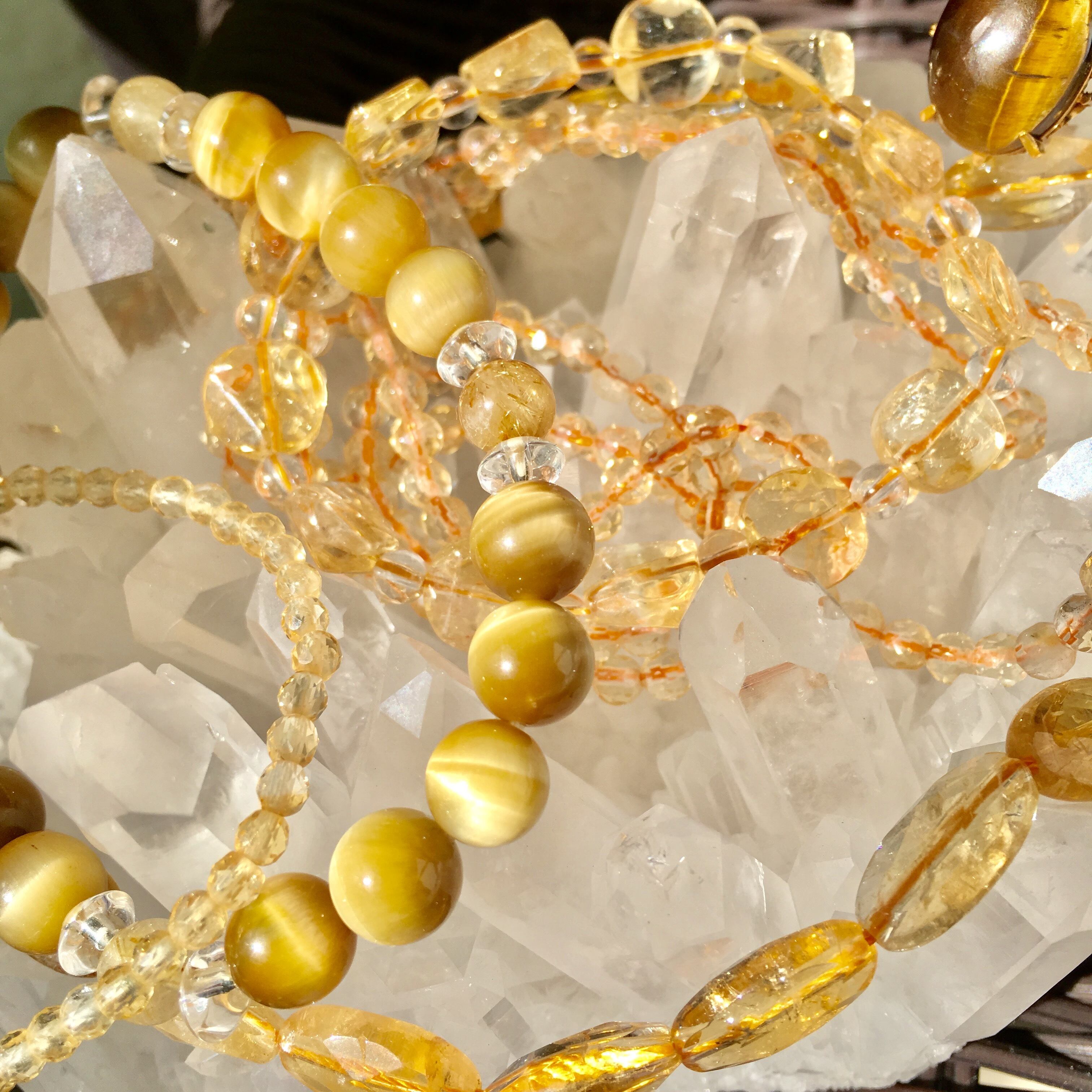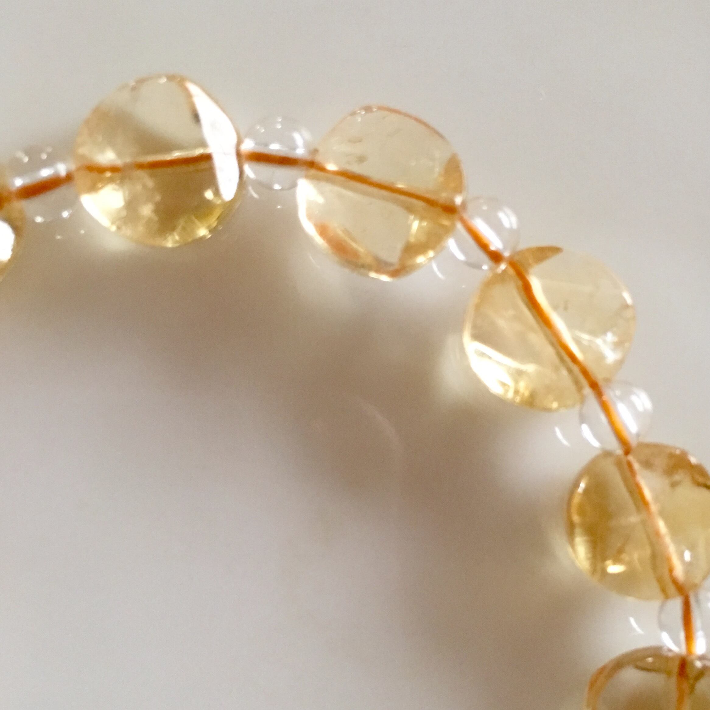 大きめの珍しいカットのシトリンと小さな丸い水晶でパワーストーン着けています!と感じさせないスタイルで、さりげなくセレブリティーなパワーを身につけることができ生命力アップになります✨