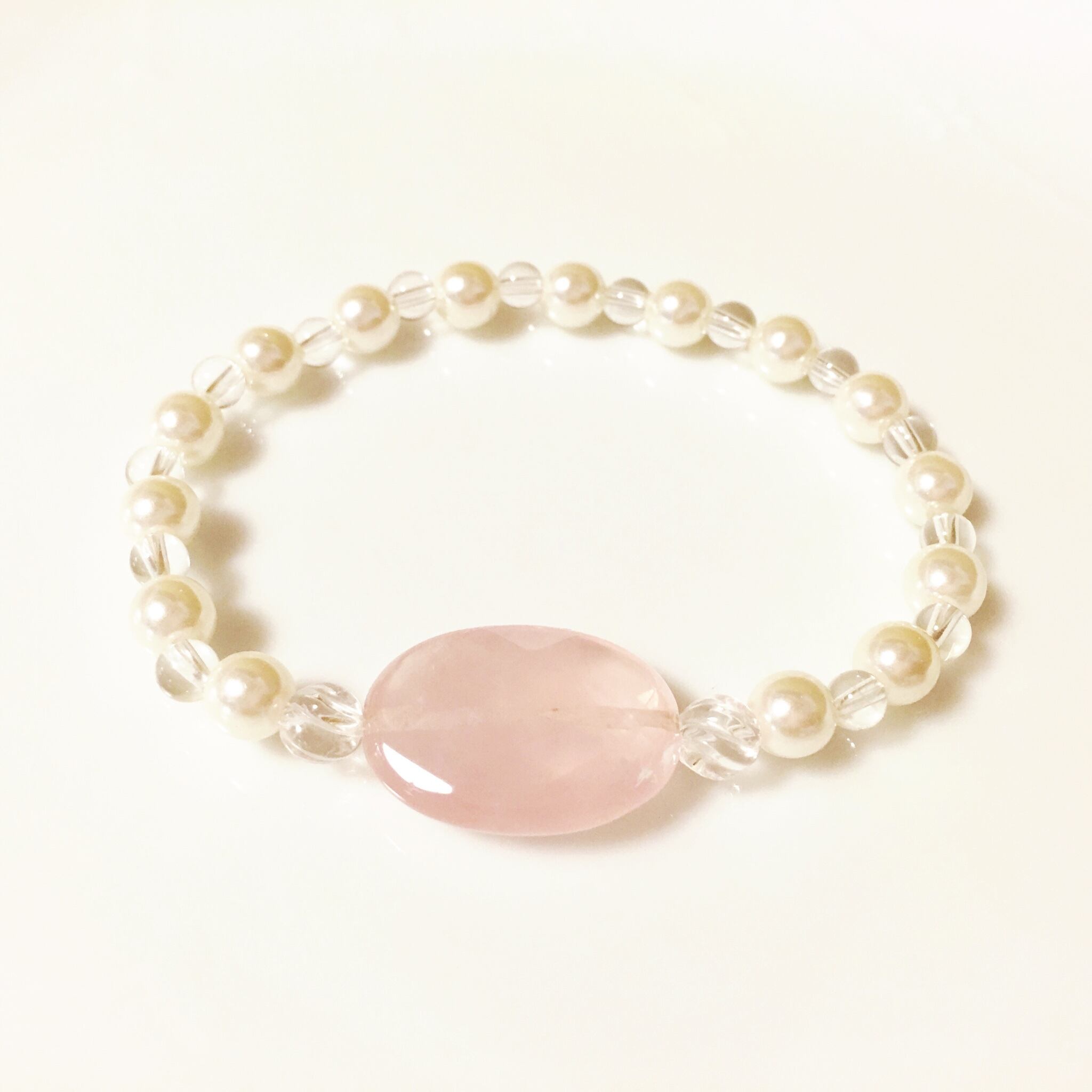ローズクォーツ&水晶&貝パールのヒーリングブレスレット