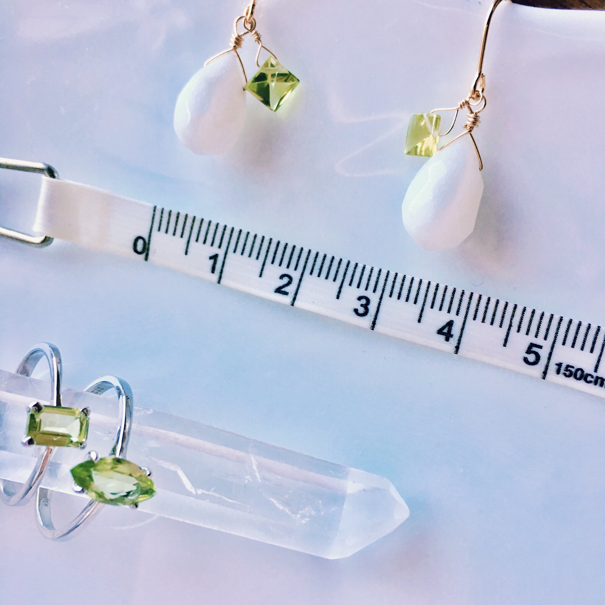 ホワイトアゲードのミルキーな白い色にマスカットのような綺麗な緑色のペリドットが映えます✨