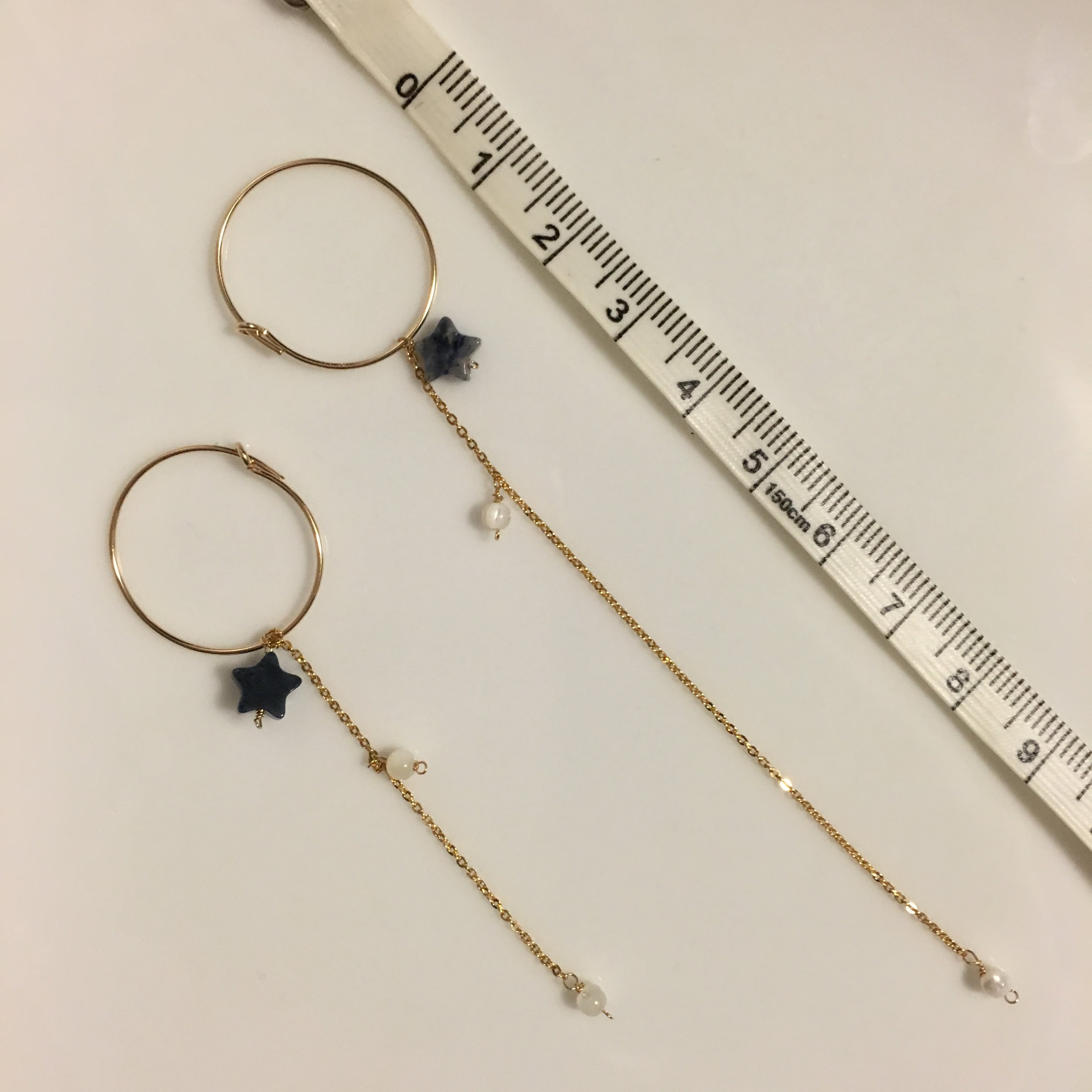 デニムのようなカラーで星型のソーダライトというパワーストーンを使用しました.+*:゚+。.☆